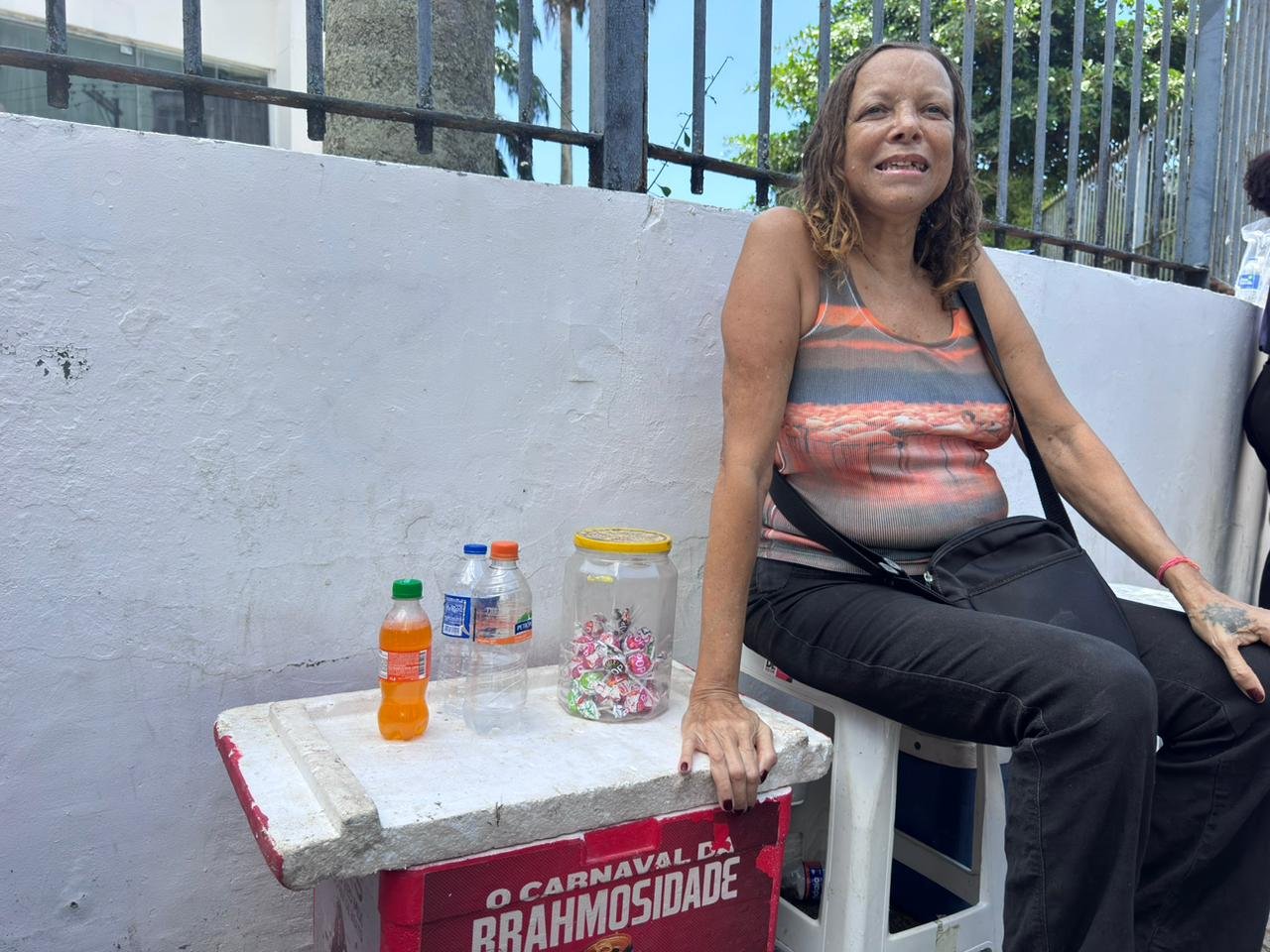 A vendedora Ângela Maria, de 62 anos, já é presença garantida todos os anos na porta da escola. Com sua barraca improvisada, ela oferecia água, refrigerante e doces aos candidatos e acompanhantes. “Graças a Deus, as vendas são boas, né? Não está maravilhosa, mas está saindo aos pouquinhos”, contou, com bom humor.