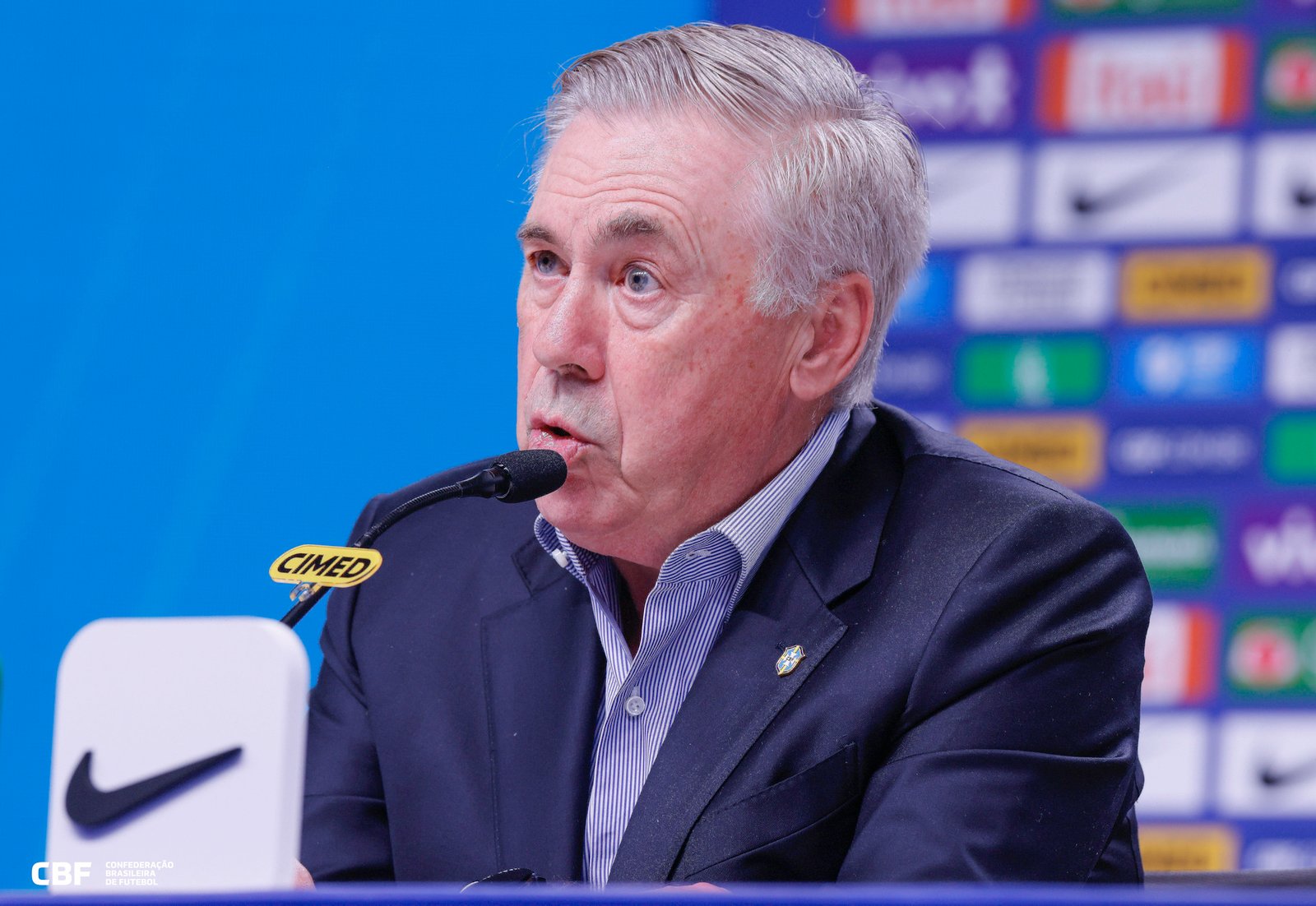 “Teremos jogo nessa noite pela Champions, jogo no próximo final de semana. Privilegiamos os jogadores europeus, porque têm que viajar menos do que os que jogam no Brasil e também por causa do fuso horário. Os convocados pela primeira vez terão oportunidade comigo, mas não é a lista definitiva. Obviamente que muitos desses estarão na Copa do Mundo, mas é uma lista que leva em conta também as lesões que tivemos nos últimos dias. É uma oportunidade para outros demonstrarem suas qualidades”, iniciou Ancelotti.