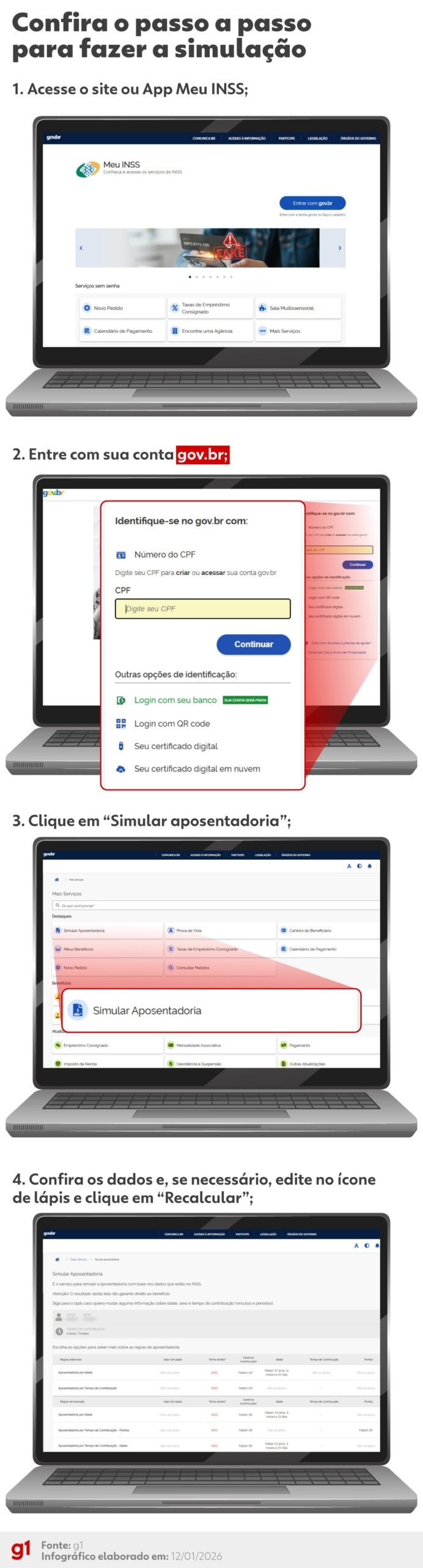 ➡️ Para ajudar nesse planejamento, o INSS disponibiliza um simulador de aposentadoria, acessível pelo site e pelo aplicativo Meu INSS, que permite calcular o tempo de contribuição e estimar o valor do benefício.