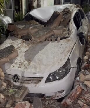 A estrutura caiu sobre dois carros e uma motocicleta - Foto: Reprodução/@nordesteusouAs fortes chuvas que atingiram Salvador nesta segunda-feira, 20, causaram sérias ocorrências registradas pela Defesa Civil de Salvador (Codesal)…