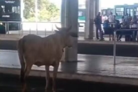 Uma cena inusitada chamou a atenção de quem passava pelo terminal de ônibus de Águas Claras, em Salvador, na manhã desta quinta-feira, 16. Um boi apareceu tranquilamente ao lado da…