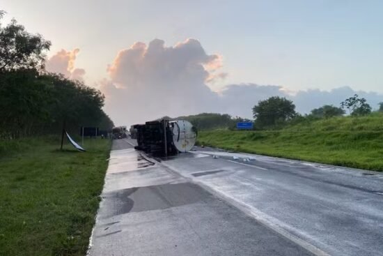 pista é liberada 13 horas após caminhão-tanque tombar