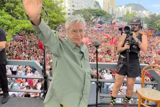 Caetano Veloso se apresenta em ato contra PL que reduz pena de Bolsonaro