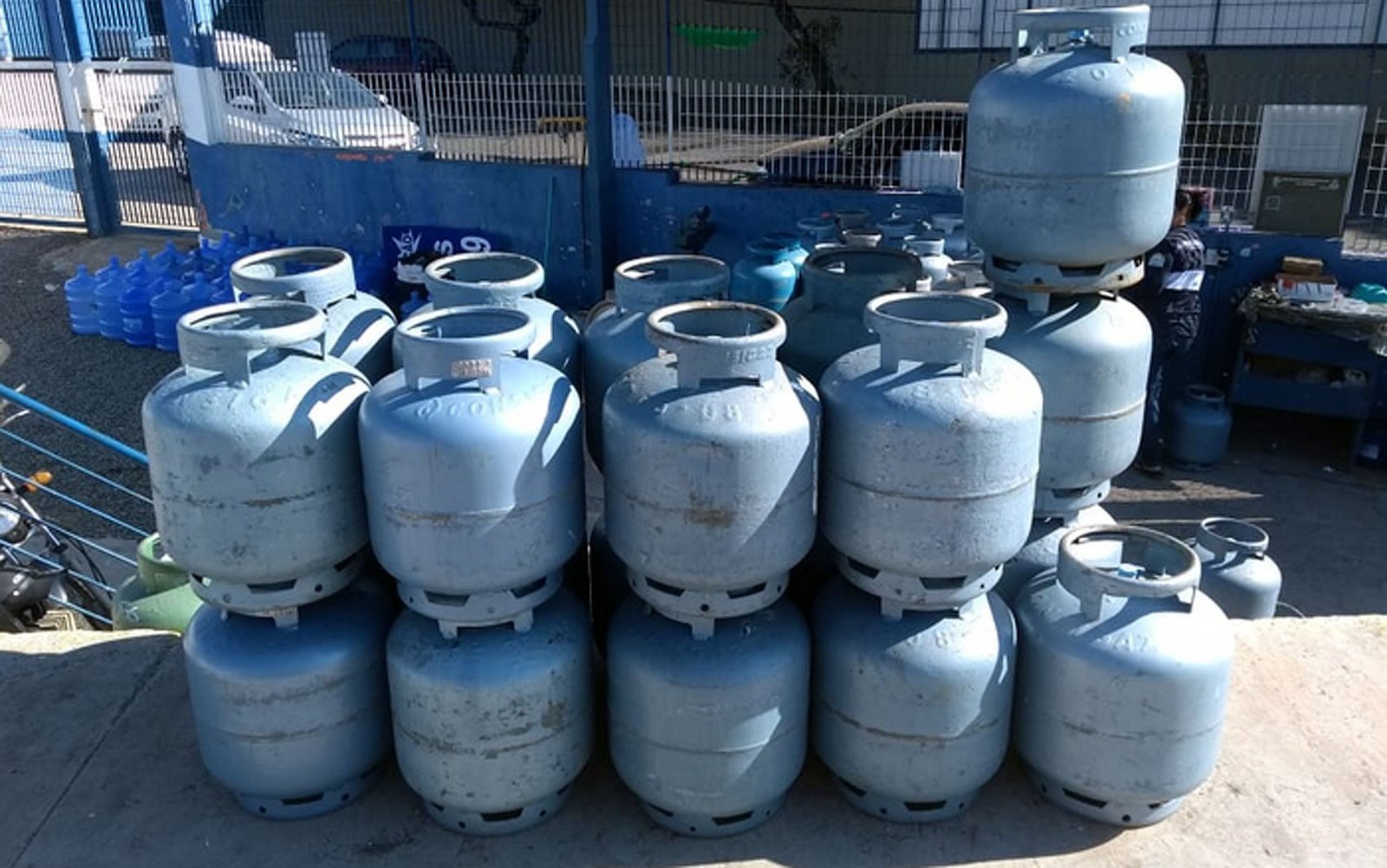 Botijões de gás em posto de revenda no Jardim São Gabriel, em Campinas