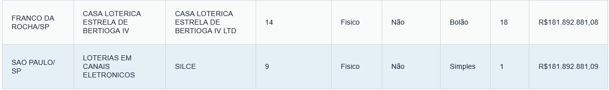 Curitiba (PR), com 2 apostas vencedoras