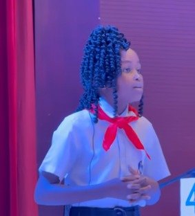 A jovem, de 11 anos, começou seu discurso dizendo que o presidente Lula “não chegou, o senhor já estava aqui” e que “África está dentro do Brasil“. Ela agradeceu ao presidente por tudo o que ele fez pelo Brasil e pelo mundo, e disse que, mesmo sendo pobre, ela não tem uma infância pequena.