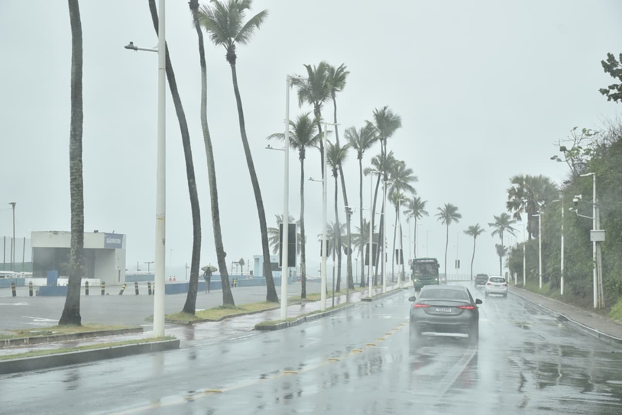 A segunda começou com céu nublado e fortes chuvas em Salvador, conforme previsto pelo Instituto Nacional de Meteorologia (Inmet), que emitiu cinco alertas meteorológicos, três nas cores amarelo e dois na cor laranja para áreas do estado da Bahia.