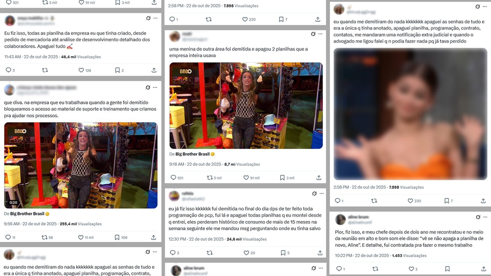 Os relatos se multiplicam e, em muitos deles, a reação do público mistura empatia e riso, como se o ato de apagar arquivos fosse uma forma de se vingar de demissões mal conduzidas.